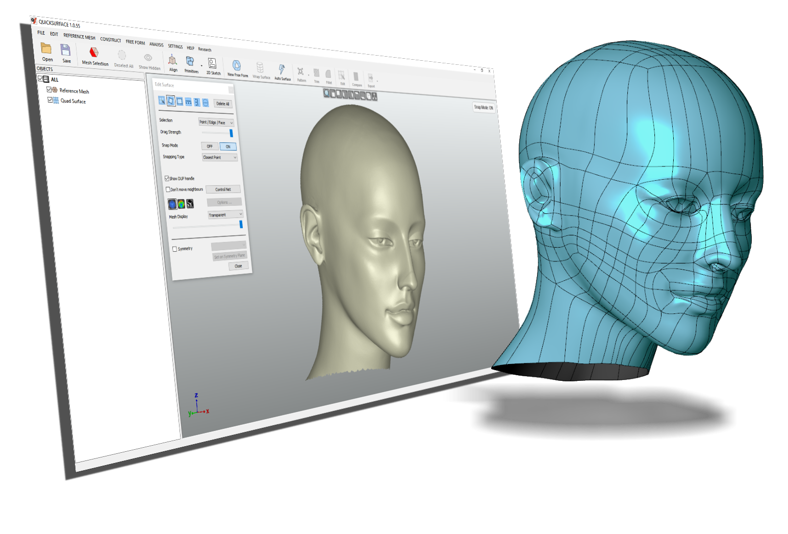 QUICKSURFACE is user-friendly yet powerful for 3D reverse engineering, allowing both professionals and non-professionals to easily convert 3D scanned STL meshes.